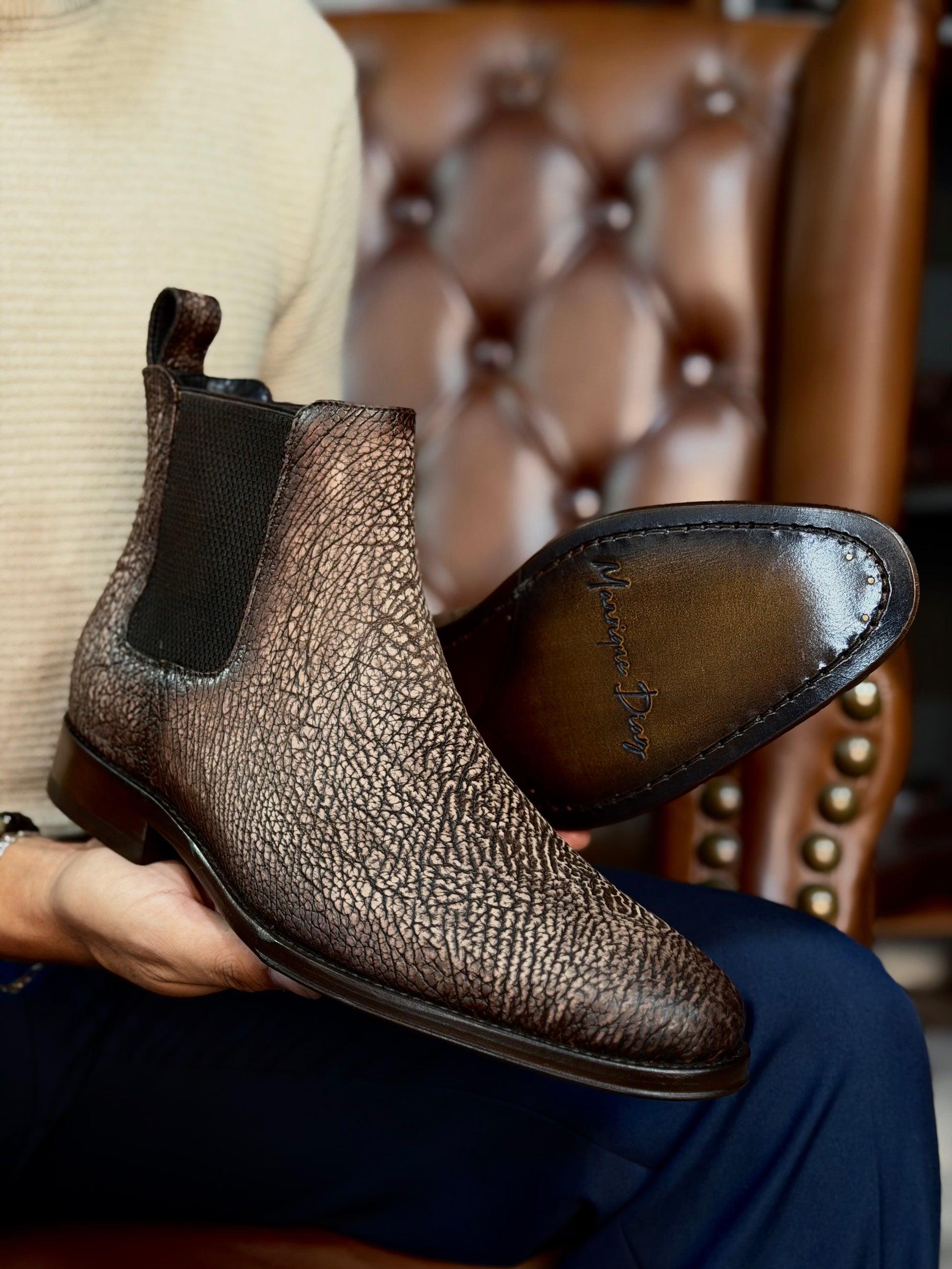 Cada par se crea exclusivamente bajo pedido, ofreciendo la posibilidad de elegir el tono y la piel exotica que mejor reflejlen tu estilo y personalidad.