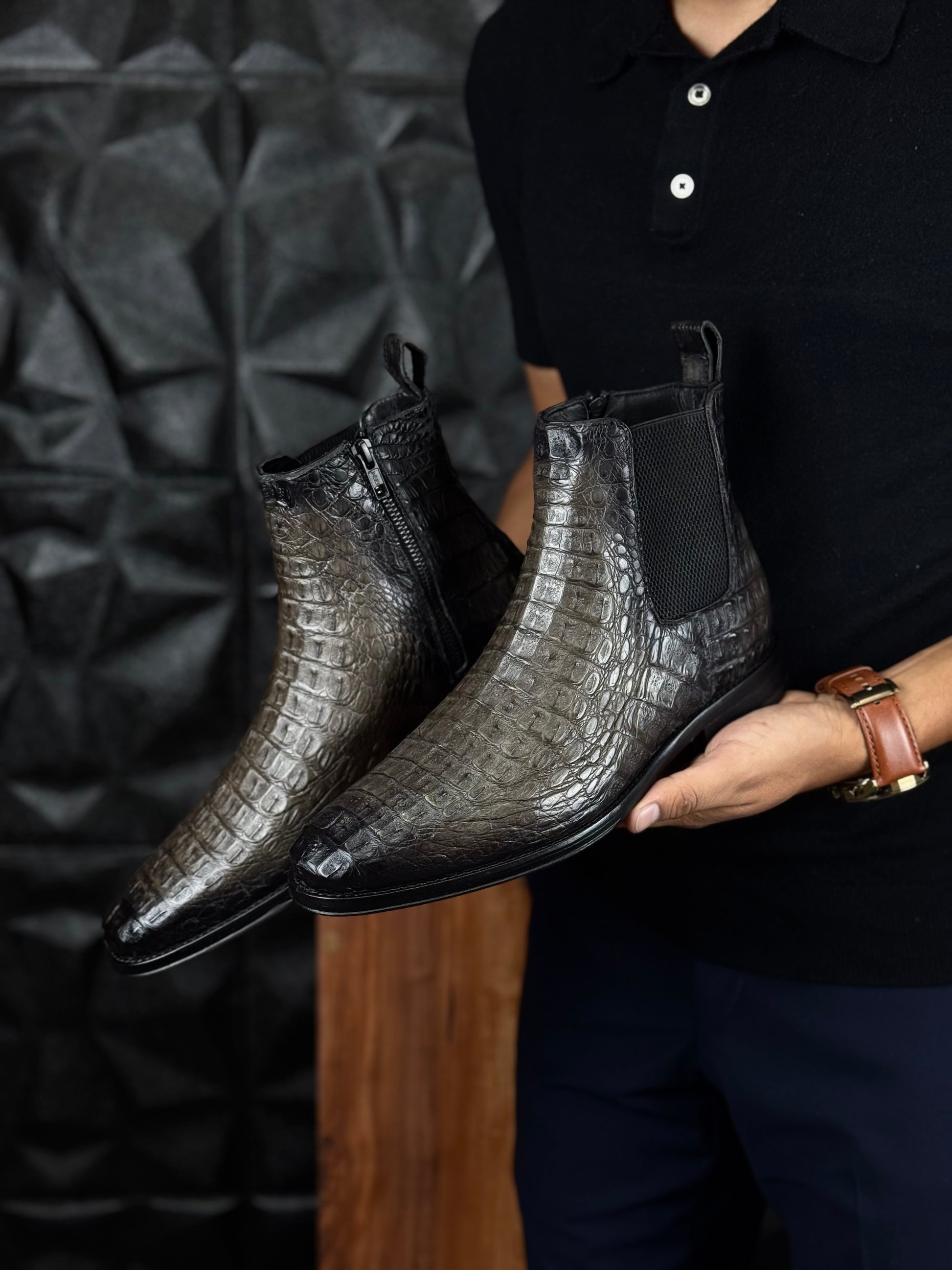 Cada par se crea exclusivamente bajo pedido, ofreciendo la posibilidad de elegir el tono y la piel exotica que mejor reflejlen tu estilo y personalidad.