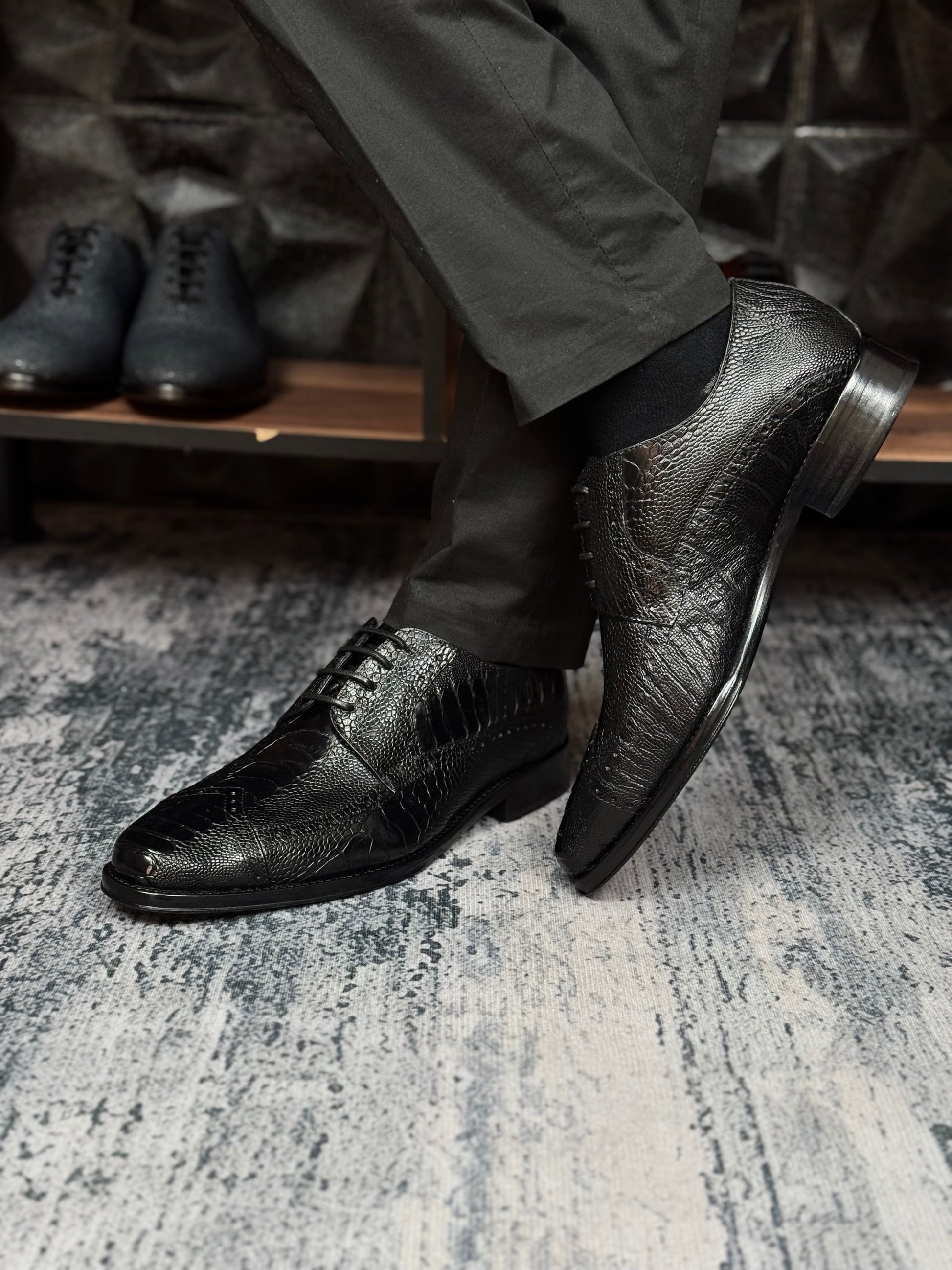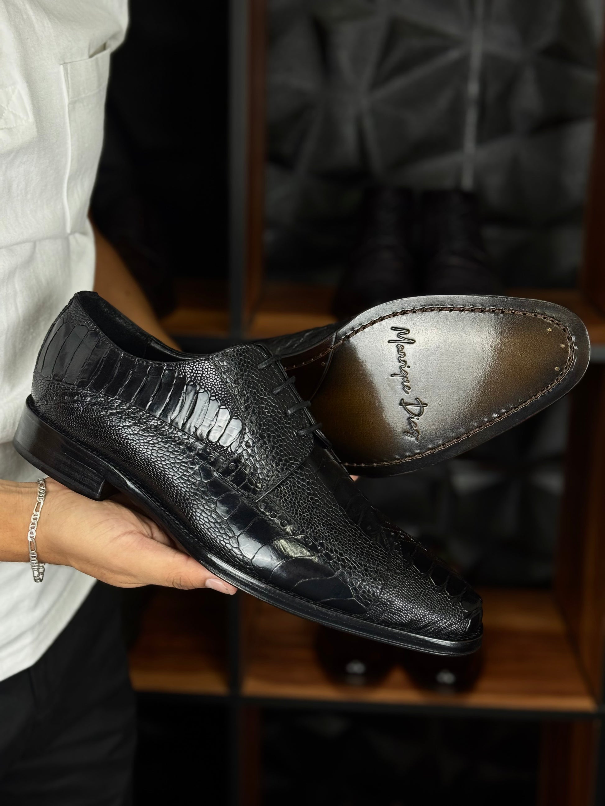 - Material: Piel autentica de PATA DE AVESTRUZ y forro de res vacuno.