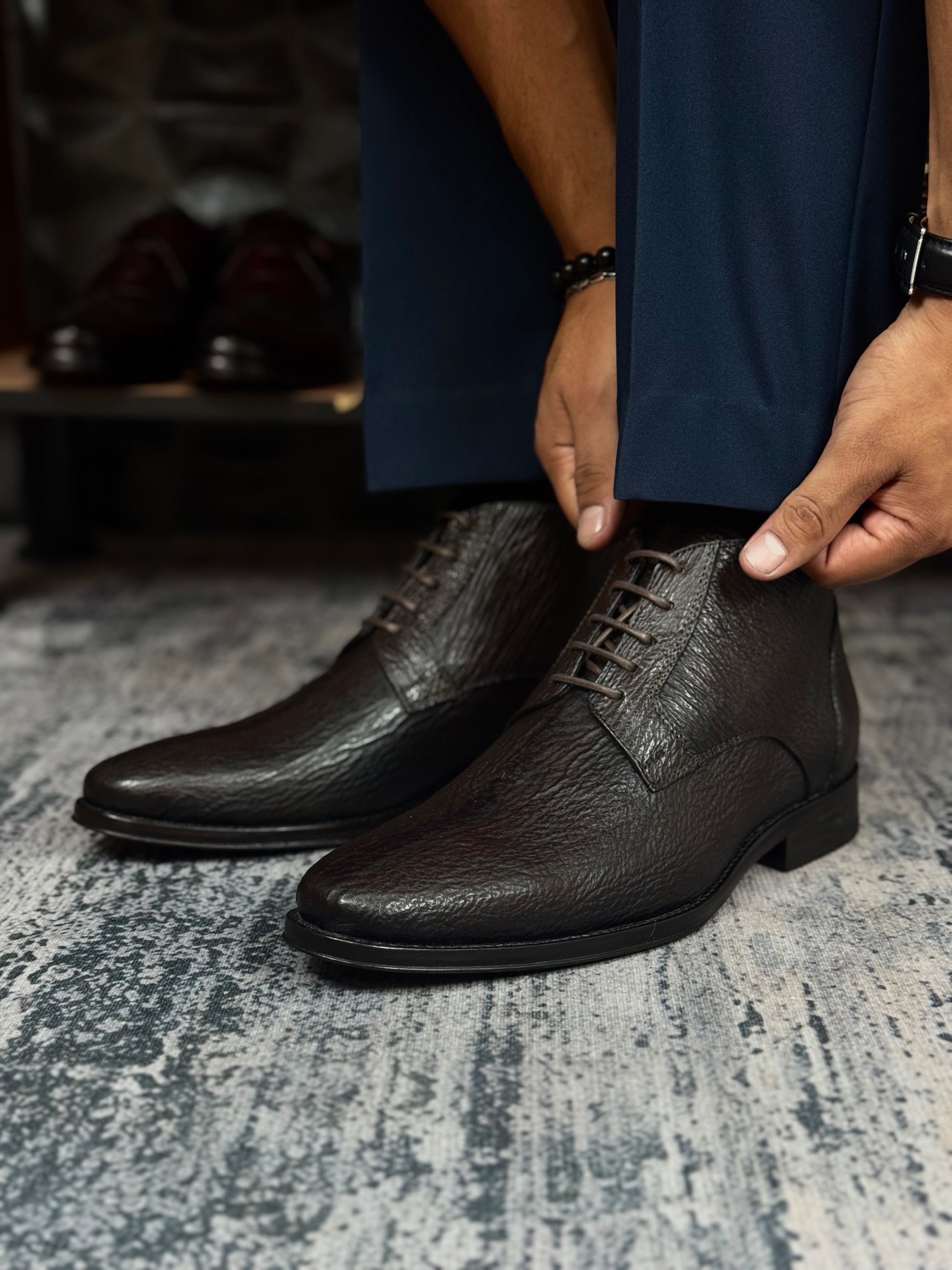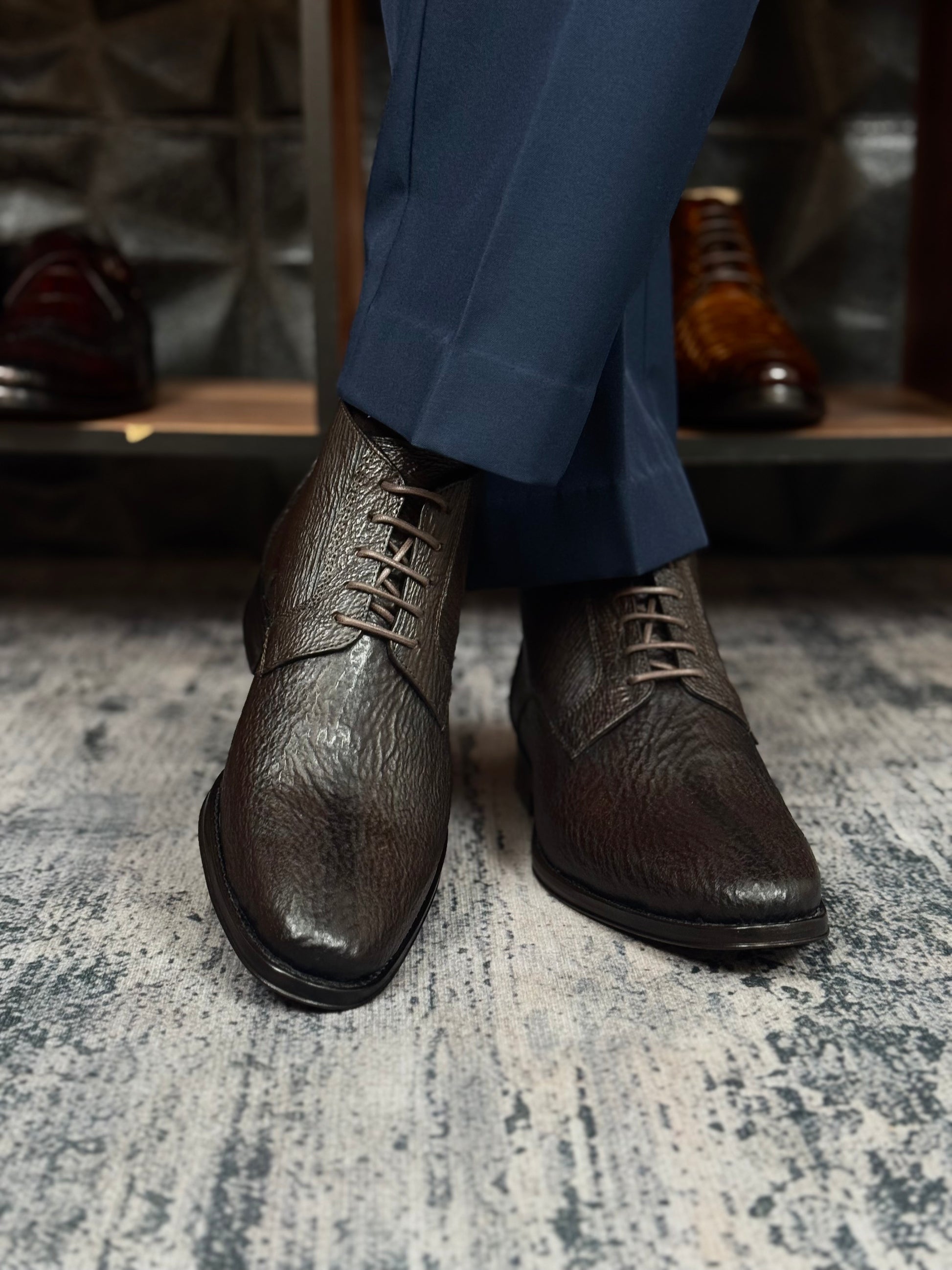 Cada par se crea exclusivamente bajo pedido, ofreciendo la posibilidad de elegir el tono y la piel exotica que mejor reflejlen tu estilo y personalidad.
